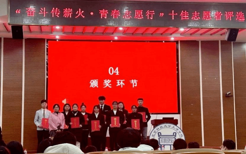 通過本次活動評選出了“十佳志愿者”、“百優志愿者”,相信志愿者們會懷著這份榮譽一起繼續投身到志愿服務當中去,他們的情懷和奉獻精神將激勵更多的人加入志愿服務的行列。平凡之軀亦可為他人遮風擋雨,點滴之力亦可匯聚成磅礴力量,他們是北科天院志愿者們的優秀榜樣,用實際行動詮釋雷鋒精神。