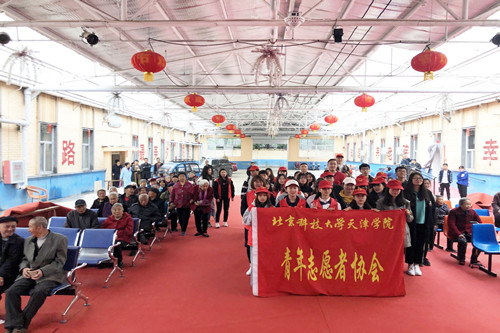 為貫徹習近平總書記在十九大報告中指出的要培育和踐行社會主義核心價值觀,提高當代大學生對社會的責任感和心系社會的意識,2019年4月27日下午,北京科技大學天津學院青年志愿者協(xié)會來到了寶坻區(qū)舒心敬老院,開展了一場關于關愛老人、孝敬老人的慰問活動,此次活動旨在讓青年志愿者們?yōu)槔先藗儙郏尷先藗兏惺艿綔嘏涂鞓贰?nbsp;