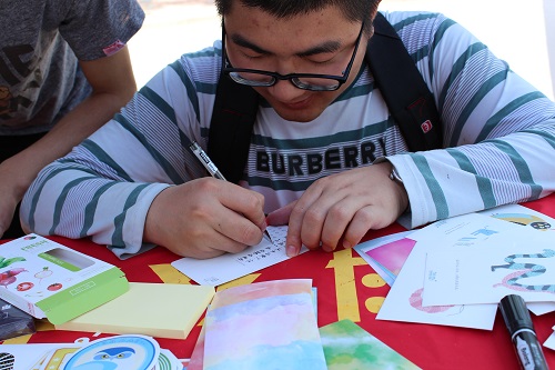 活動現場母親節海報吸引了廣大同學的駐足留意,在經過我們桌子上精美的明信片和孝心社同學的講解,同學們反響熱烈,積極參與進來,紛紛在明信片上寫下各自對母親的節日祝福,另外一些同學則把自己想對媽媽說的知心話寫在便利貼上并貼在海報上。片刻海報上便的貼上了許多祝福語:“祝媽媽天天開心,身體健康!”、“祝母親永遠年輕漂亮!”等。常常,我們感動于“春蠶到死絲方盡”的無私和“蠟炬成灰淚始干”的奉獻。但人世間沒有任何一種無私和奉獻能與母愛相提并論。即使再冷酷無情和鐵石心腸的人,也能體會到母親的關愛給予他們的心靈慰藉與情感撫慰。也正是這簡潔樸實的語音才能蘊含對媽媽的濃濃愛意。