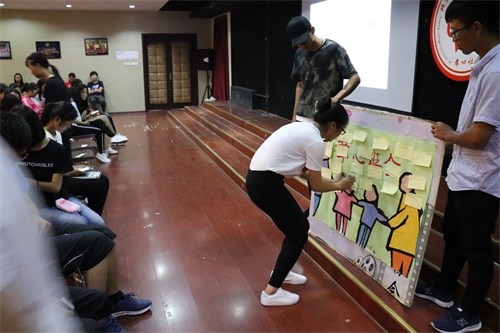 一段“二十年后的父母”的開場(chǎng)視頻為活動(dòng)拉開序幕,視頻讓許多同學(xué)聯(lián)想起自己父母二十年后的模樣,內(nèi)心不禁酸楚襲來。隨后,現(xiàn)場(chǎng)播放了班級(jí)同學(xué)家長(zhǎng)對(duì)子女寄語的視頻,言語中流露出他們對(duì)子女剛步入大學(xué)校園的期望,家長(zhǎng)叮囑子女,“大學(xué)是走向社會(huì)的最后一道門檻,希望你能不忘初心,好好度過屬于自己的大學(xué)生活?!奔议L(zhǎng)視頻播放完之后,主持人與同學(xué)們進(jìn)行現(xiàn)場(chǎng)互動(dòng),主持人隨機(jī)提問同學(xué)們對(duì)于父母的生日、喜好等,同學(xué)積極參與,對(duì)答如流。古語道:“百善孝為先”,孝道是眾善之本,隨后,來自院孝心社宣講員馬新燕同學(xué)為大家?guī)砹祟}為《用心感恩父母》的宣講,“感恩”是一種生活態(tài)度,更是一種責(zé)任,同學(xué)們要心懷感恩之心,常做感恩之事。宣講之后,同學(xué)們集體深情并茂進(jìn)行了一段詩朗誦,朗誦內(nèi)容雖然樸實(shí)無華,卻飽含同學(xué)們對(duì)父母的感恩之情,朗誦將活動(dòng)推向了高潮。全體同學(xué)也在活動(dòng)現(xiàn)場(chǎng)寫下了他們對(duì)父母想說的話,很多同學(xué)在便利貼上反思自己此前對(duì)父母的一言一行,所有同學(xué)最后將自己寫的話貼在了孝心墻上,每一張貼紙都表達(dá)了學(xué)生對(duì)父母濃濃的愛。