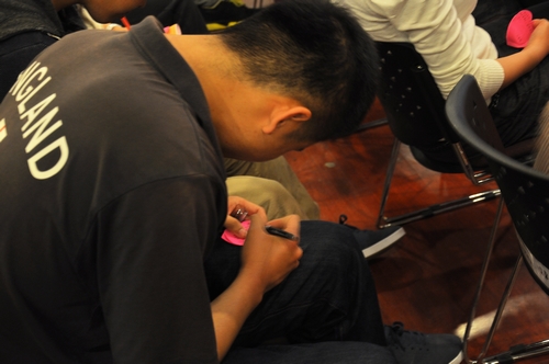 同學(xué)們將自己對(duì)爸爸媽媽想要說(shuō)的話(huà)貼在留言板上