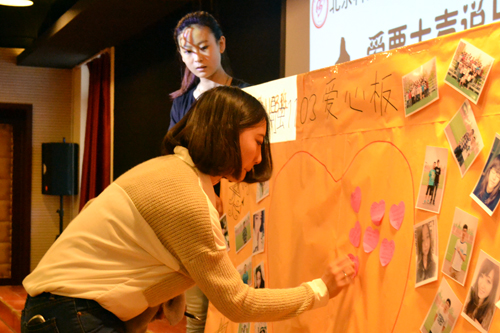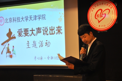 一段簡(jiǎn)單的開(kāi)場(chǎng)之后,孝心社張永康同學(xué)首先與大家分享了他對(duì)孝的理解。 “孝心,并非是長(zhǎng)大后才有的責(zé)任,也并非是用金錢(qián)就能彌補(bǔ)”、“孝心其實(shí)很簡(jiǎn)單,比如,為家里清掃一次房間;為母親倒一杯水;為父親捶一次背……”樸實(shí)的話(huà)語(yǔ)道出了他對(duì)孝的點(diǎn)滴體會(huì)。金融1103班班同學(xué)自己拍攝并制作的視頻記錄了他們對(duì)父母想說(shuō)的話(huà)。孝心社劉曉通過(guò)自己的親身經(jīng)歷告訴了大家“行孝不能等”這個(gè)道理,很多同學(xué)聽(tīng)完之后都默默的擦起了眼淚。李翔同學(xué)演唱的《父親》也深深的打動(dòng)了大家。部分同學(xué)的父母用電話(huà)錄音的方式表達(dá)了他們對(duì)于在遠(yuǎn)方求學(xué)的同學(xué)們的掛念和祝福。全班同學(xué)和著鋼琴伴奏共同演唱了《燭光里的媽媽》,歌聲傳遞了同學(xué)們對(duì)爸爸媽媽的祝福。活動(dòng)最后,同學(xué)們將自己對(duì)爸爸媽媽想要說(shuō)的話(huà)寫(xiě)在留言板上,一句句簡(jiǎn)單的話(huà)表達(dá)了對(duì)父母真摯的愛(ài)。