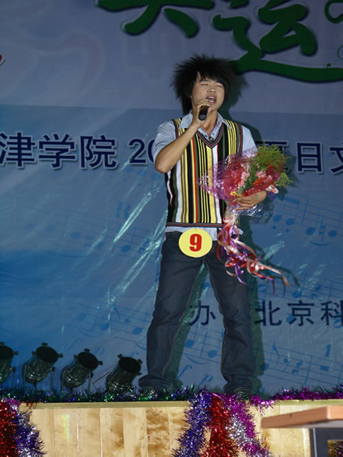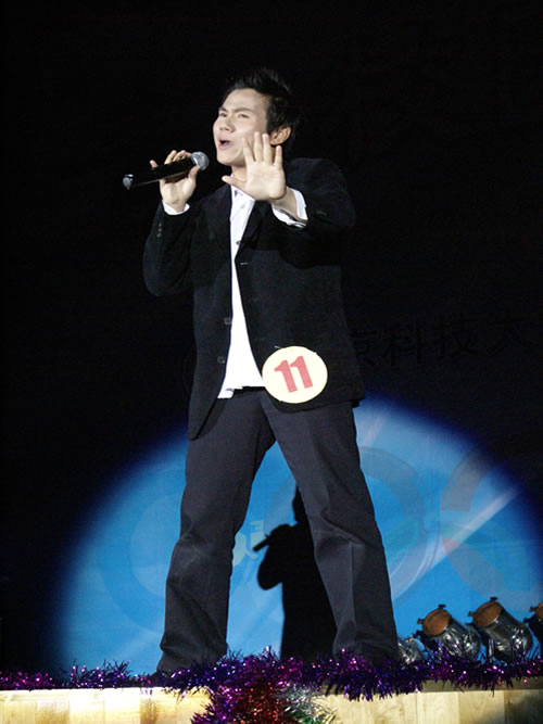 07級輔導員、北京科技大學第五屆校園歌手大賽亞軍啜吳昊老師為同學們獻上歌曲《滾滾長江東逝水》。