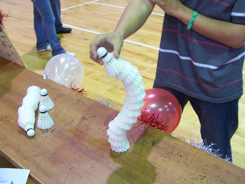 活動分為兩個環(huán)節(jié)。第一個環(huán)節(jié)為競技體育,以“擁抱青春,體驗激情,貼近奧運,暢想未來”為主題。項目分為體育類和益智類,參與任何一項體育項目的獲勝者,在報名表上都會得到一個勝利標識,當標識累積到三個以上時,就可以到兌獎處兌換相應的精美獎品。學生會將根據(jù)最后收回的報名表評選出“校園吉尼斯記錄”保持者,并頒發(fā)校園吉尼斯記錄榮譽證書。比賽形式新穎獨特,如羽毛球中的掂球、定點擊球;乒乓球中的夾球、吸球;籃球中的遠投、轉(zhuǎn)球等。這些項目看似簡單,實則需要很多技巧。最受矚目的當屬“三分投籃”的比賽了,同學們自己競賽的同時,還邀請體育老師趙文男表演遠投技巧。趙老師的精湛技藝,讓在場同學們大飽眼福。與此同時,“手動創(chuàng)意”比賽則吸引到了眾多女生的關注,定時拼圖、DIY串珠、美甲等項目,讓心靈手巧的女生們擁有了展示的舞臺。