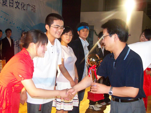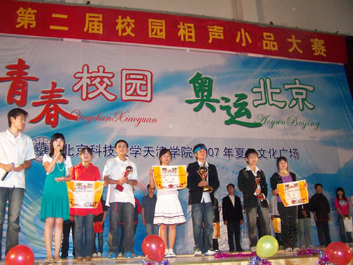 根據評委打分,國貿專業的小品《Q版伯哥與臺妹》獲一等獎、金融專業的小品《新聞聯播》獲二等獎、戲劇社的小品《考驗》獲三等獎,各單項獎也都名花有主。黨委副書記、副院長王斌、團委副書記岳強、張恩惠、代鴻濱等領導上臺頒獎并向演員們表示祝賀。大賽在第二屆校園歌手大賽冠軍得主官曉塵的歌聲中圓滿結束。