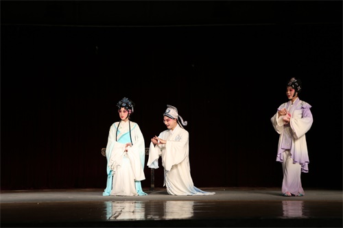 藝術教育中心常務副主任韓程羽,團委宣傳部部長、外語系分團委書記張添善,藝術系分團委書記李洋,藝術教育中心學生藝術團指導教師盛鑫娜等500余名師生觀看了演出。隨著雷鳴般的掌聲響起,昆曲《西廂記》在金沙城js93線路檢測中心拉開了帷幕。