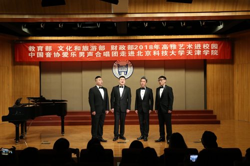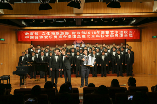 為認(rèn)真學(xué)習(xí)貫徹黨的十九大精神,進(jìn)一步落實(shí)《教育部辦公廳 文化和旅游部辦公廳 財(cái)政部辦公廳關(guān)于開展2018年高雅藝術(shù)進(jìn)校園活動(dòng)的通知》,9月17日18:30“教育部 文化和旅游部 財(cái)政部 2018 年高雅藝術(shù)進(jìn)校園——中國(guó)音協(xié)愛樂男聲合唱團(tuán)走進(jìn)北京科技大學(xué)天津?qū)W院”音樂會(huì)在金沙城js93線路檢測(cè)中心弘藝音樂廳精彩上演。教務(wù)處長(zhǎng)張建華、招生就業(yè)處長(zhǎng)柯瑜、藝術(shù)系副主任林碧蕓等與百余名師生共同觀看了演出。