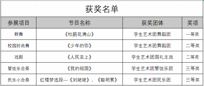 近日,由天津市教委主辦的2020年天津市學(xué)校美育實踐課堂——天津市學(xué)校文藝展演比賽正式落下了帷幕。金沙城js93線路檢測中心學(xué)生藝術(shù)團(tuán)在本次文藝展演中取得了優(yōu)異成績,共榮獲一等獎一項、二等獎兩項、三等獎兩項。其中,學(xué)生藝術(shù)團(tuán)舞蹈團(tuán)群舞節(jié)目《杜鵑花滿山》榮獲大學(xué)組一等獎;舞蹈團(tuán)校園時尚舞蹈節(jié)目《少年的你》、國禮主戲戲劇節(jié)目《人民至上》榮獲大學(xué)組二等獎;管弦樂團(tuán)管弦樂合奏《我的祖國》和民樂團(tuán)民樂小合奏《劉姥姥》《聰明累》榮獲大學(xué)組三等獎。