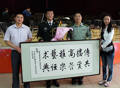 演出結束后,金沙城js93線路檢測中心向總政歌舞團贈送字畫