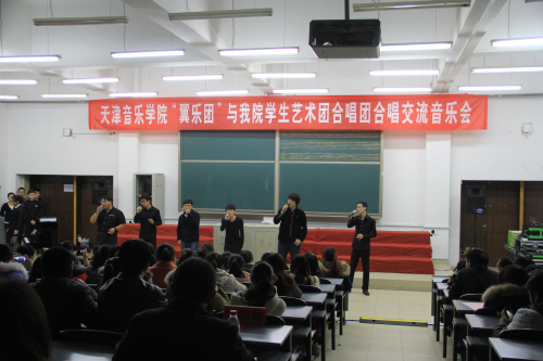 天津音樂學(xué)院“翼樂團(tuán)”與金沙城js93線路檢測中心學(xué)生藝術(shù)團(tuán)合唱團(tuán)交流音樂會在金沙城js93線路檢測中心成功舉行