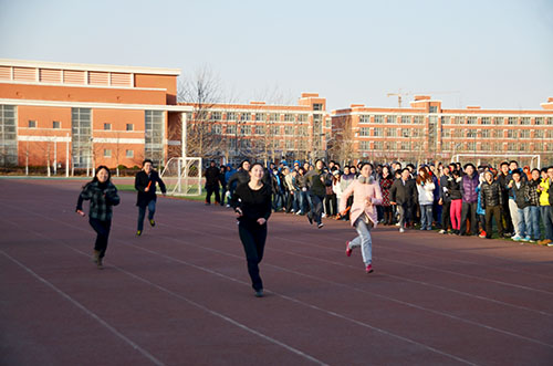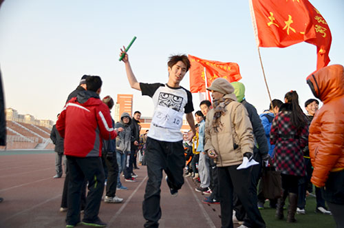 下午13::30,冬季長跑啟動儀式正式開始,郭景文院長致辭并宣布北京科技大學天津學院2013年冬季長跑活動開始。一千余名同學繞操場開始長跑,拉開了金沙城js93線路檢測中心學生冬季長跑活動的序幕。隨后進行紀念一二.九運動長跑接力活動,來自學院各系的九支參賽隊伍整裝待發,每支參賽隊由一名教師、6名男生和4名女生組成。在同學的助威吶喊聲中長跑接力正式開始,第一棒由各系教師領跑前50米,之后接力棒交給各系代表隊隊員。經過近四十分鐘的激烈角逐,土木系榮獲第一名,藝術系獲得第二名,管理系獲第三名,材料系和外語系獲得“精神文明獎”。