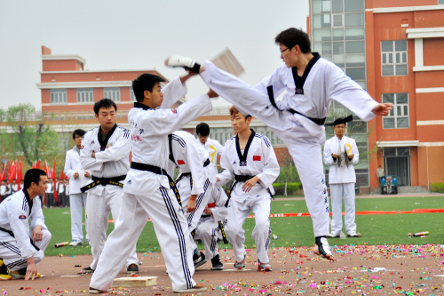 迎著春季輕柔的微風,本次運動會開幕式在激昂的音樂聲中拉開了序幕。土木工程系代表隊邁著鏗鏘有力的步伐進入會場,他們所表演的跆拳道、中國拳、舞獅以及雙截棍體現了土木學子身上獨有活力與朝氣。緊隨其后的是材料科學與工程系代表隊,方隊伴隨著充滿活力的樂曲闊步向前,表演方隊所表演的“真人象棋”表現出材料系獨有的創意,贏得了在場學子的陣陣喝彩。接著,機械工程系代表隊昂首向主席臺走來,別出心裁的舞蹈展現出了同學們之間的默契,展現出了同學們相互配合、共同進步的特色。然后,經濟系代表隊帶著自信的微笑緩緩向主席臺前進,具有中國文化特色的舞龍、腰鼓以及扇子舞,默契的配合使整個方隊的表演整齊化一,使在場觀眾眼前一亮。管理系代表隊、法律系代表隊、外語系代表隊滿懷豪情,邁著矯健的步伐來到會場,各系帶來的舞蹈充滿了青春氣息。最后進入會場的是藝術系代表隊,舞者們以優雅的華爾茲開場,又以激情澎湃的舞蹈結束。