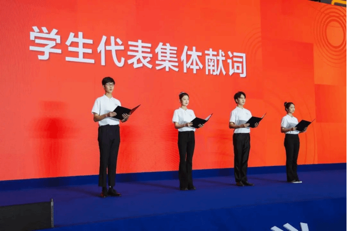 校友代表2013屆金融工程專業畢業生白學成、教師代表、基礎部主任、北京市教學名師范玉妹教授分別發言,學生代表集體獻詞。