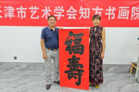 隨后,活動進入書畫創作環節。天津市藝術學會知方書畫院的藝術家們現場提筆創作,以筆墨為媒展現中華優秀傳統文化的深厚底蘊。期間,藝術家們運用了多種書體,書寫了“福壽”等蘊含美好祝福的文化寓意的內容,筆力遒勁,氣韻生動;同時創作了以梅蘭竹菊為主題的繪畫作品,借物詠志,傳遞出堅韌不拔、高潔向上的品格追求。創作過程中,藝術家們與在場師生積極互動,結合作品講解書畫藝術的歷史傳承、技法要點及文化內涵,并耐心解答師生提出的問題。