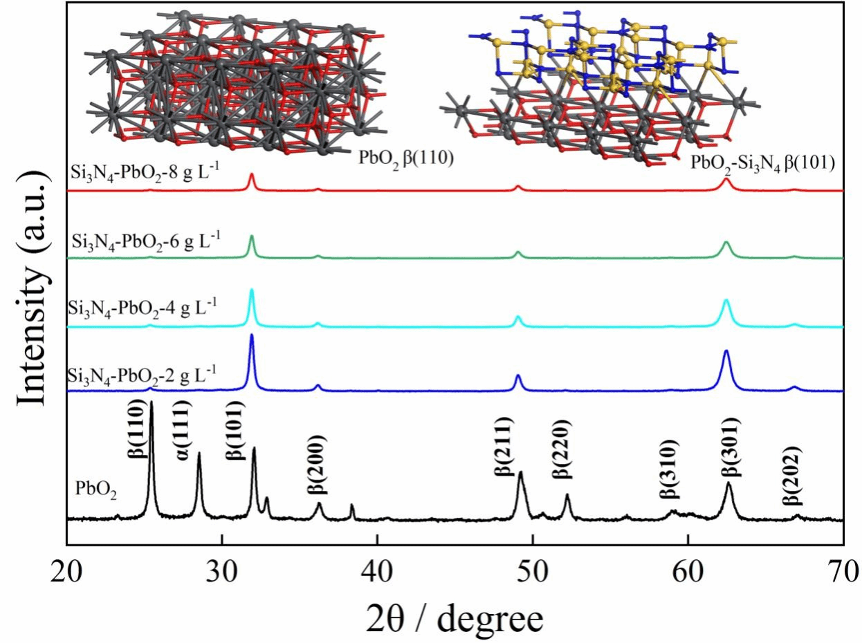 Figure 2 XRD patterns of Si3N4-PbO2 electrode and PbO2 electrode