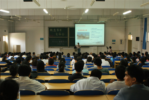 9月20日下午,在九教108室召開了新生家長見面會,金沙城js93線路檢測中心常務(wù)副院長郭景文教授向08級新生家長介紹學(xué)院情況并回答問題。新生家長熱情高漲,能容納350余人的教室座無虛席。