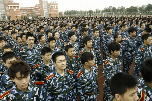 2009全體新生身著嶄新的軍裝,在體育場列隊