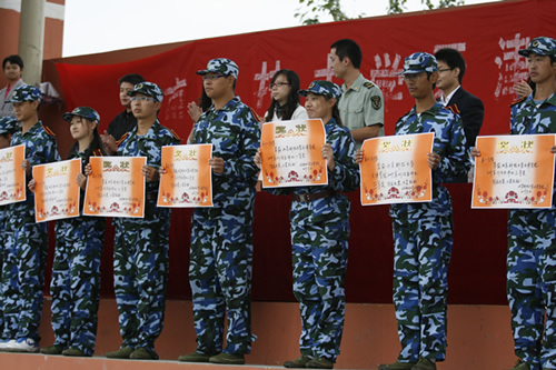 軍訓結業評比獲獎方陣代表上臺領取獎狀