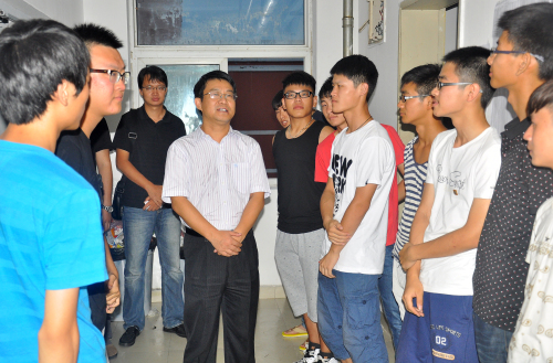 9月1日晚,院長郭景文、黨委書記王斌、財務總監(jiān)王俊敏、黨委副書記白亮在相關職能部門負責人的陪同下走訪了新生宿舍,了解他們入學以來的生活、學習情況。