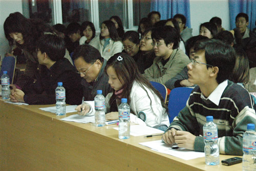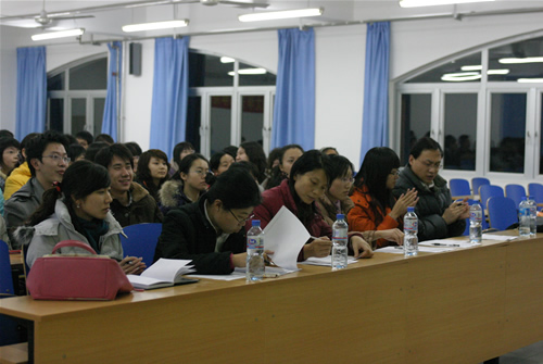 本次獎學金的評選將根據參選學生的考試成績排名、答辯綜合成績確定。各專業根據專業學生比率確定具體參加答辯的人數,來自學院05、06級12個專業學年綜合成績排名前1-3名的35位同學參加了特等獎學金答辯會。參選同學的答辯分為不多于五分鐘的自我陳述和評委自由提問兩個環節,評委根據學生答辯的風貌、自我陳述的內容、語言的組織、回答問題時把握要點的能力、突出的個人特色為依據,給參加答辯的學生評分。