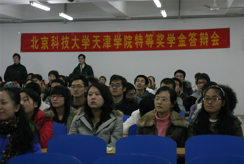 11月20日晚,北京科技大學天津學院05、06級特等獎學金答辯會分別在8教102、103室舉行。法律系副主任于圣維副教授、教育技術中心畢會英副教授、經濟系黨總支書記范麗麗、管理系黨總支書記張恩惠、信息系黨總支書記柯瑜、機械系黨總支書記郭雅娟、法律系黨總支書記代鴻濱、土木系黨總支書記趙瓊、英語系黨總支書記岳強、團委副書記謝瑋擔任答辯評委,05、06及07級全體輔導員參加了答辯會。