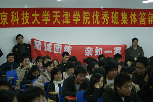 11月22日晚,北京科技大學天津工程學院2007年度優秀班集體評選答辯大會于在8教學樓201、103教室隆重舉行。來自全院05、06級共17個班集體參加了本次答辯會。土木系黨總支書記趙瓊、英語系黨總支書記岳強、機械系黨總支書記郭雅娟、信息系黨總支書記柯瑜、法律系黨總支書記代鴻濱、團委副書記謝瑋、機械系分團委書記張會賓、教學事務部劉少東、趙丹擔任答辯評委,05、06及07級全體輔導員參加了答辯會。