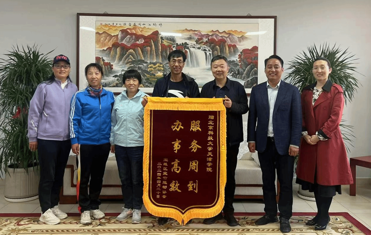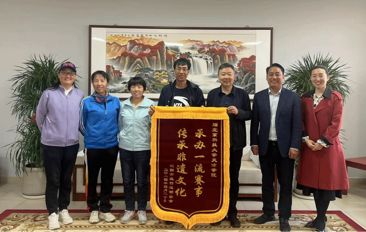 4月24日,沈陽(yáng)市空竹運(yùn)動(dòng)協(xié)會(huì)、寶坻區(qū)空竹運(yùn)動(dòng)協(xié)會(huì)專程來(lái)到學(xué)院贈(zèng)送錦旗?!俺修k一流賽事 傳承非遺文化”“服務(wù)周到 辦事高效”,一面錦旗、一份感謝,凝聚著對(duì)學(xué)院賽事承辦工作成效的充分肯定。