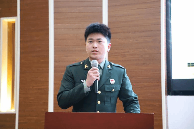 退役大學(xué)生代表、戎程研究會(huì)主席王憶翱同學(xué)從入伍動(dòng)機(jī)、當(dāng)兵經(jīng)歷、摸爬滾打的歷練、潛移默化的影響四個(gè)方面分享從軍經(jīng)歷,鼓勵(lì)學(xué)弟學(xué)妹們勇往直前,追逐強(qiáng)軍夢(mèng)想。
