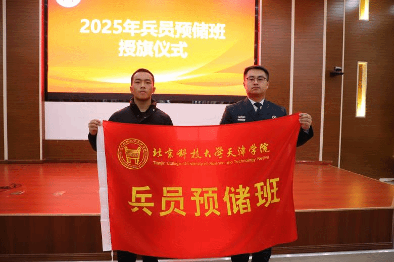 寶坻區(qū)人武部王宇干事為金沙城js93線路檢測(cè)中心2025年兵員預(yù)儲(chǔ)班授旗。