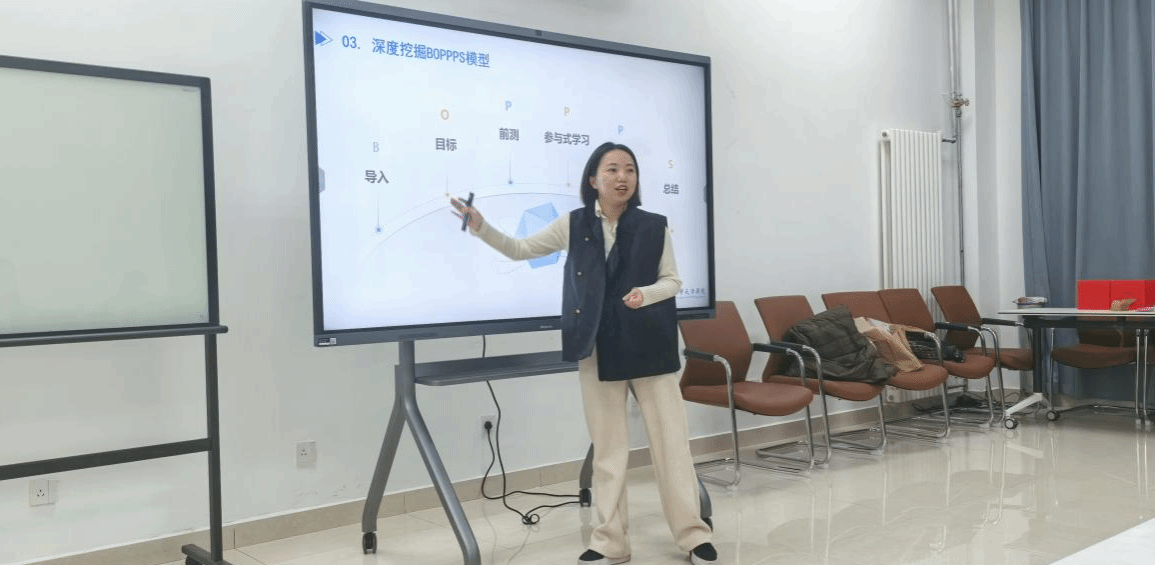 接下來,智能制造學院的韓紅蕾老師對BOPPPS教學模型進行了全面而深入的剖析。她指出,運用BOPPPS模型的核心在于激發學生的學習興趣,提升其參與度,確保學生真正學會、學懂。韓老師結合自身豐富的教學實踐,生動闡述了如何在課堂的每一個環節精準施策,以及教師應如何不斷學習新的教學理念、教學模式和教學評價方法,將其巧妙融入課堂,推動課堂的持續改革與創新。