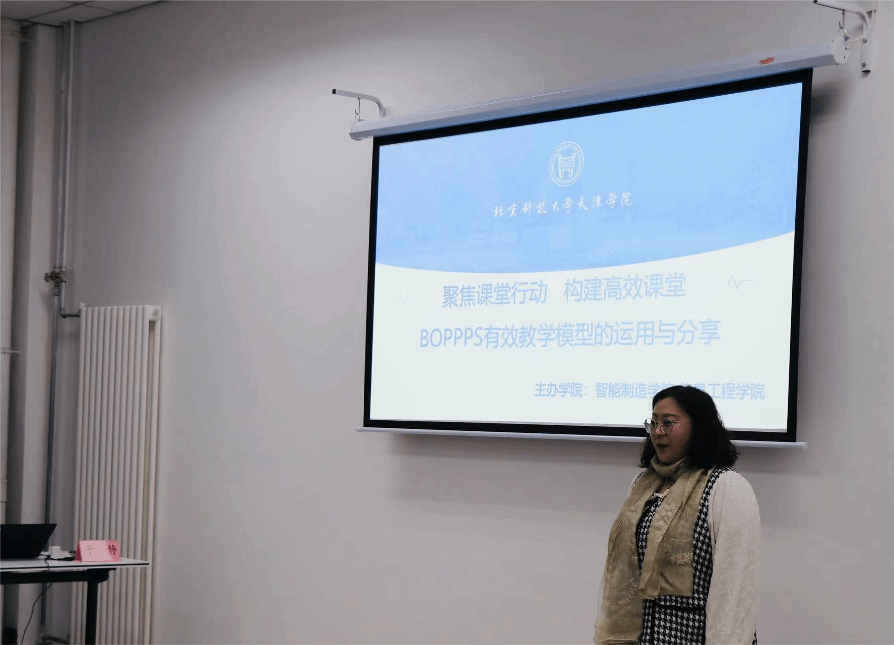 班嵐老師做了開場介紹,從學院內涵式高質量發展的指導思想角度切入,引出本次研討會的主題“聚焦課堂行動,構建高效課堂—BOPPPS有效教學模型的運用與分享”;于靜老師就“教無定法”、“孤芳自賞”的現象,指出了老師們在教學過程中存在的一些問題;智能制造學院孫沛葉老師和信息工程學院王琳老師分別以十分鐘微課形式演示了BOPPPS教學模型,兩位青年教師授課內容豐富生動、深入淺出、引人入勝;兩位評委老師及與會老師,對孫沛葉和王琳兩位老師的微課進行了客觀詳盡的剖析和點評,充分肯定了兩位老師對BOPPPS有效教學模型的運用,同時提出了諸多建設性意見。