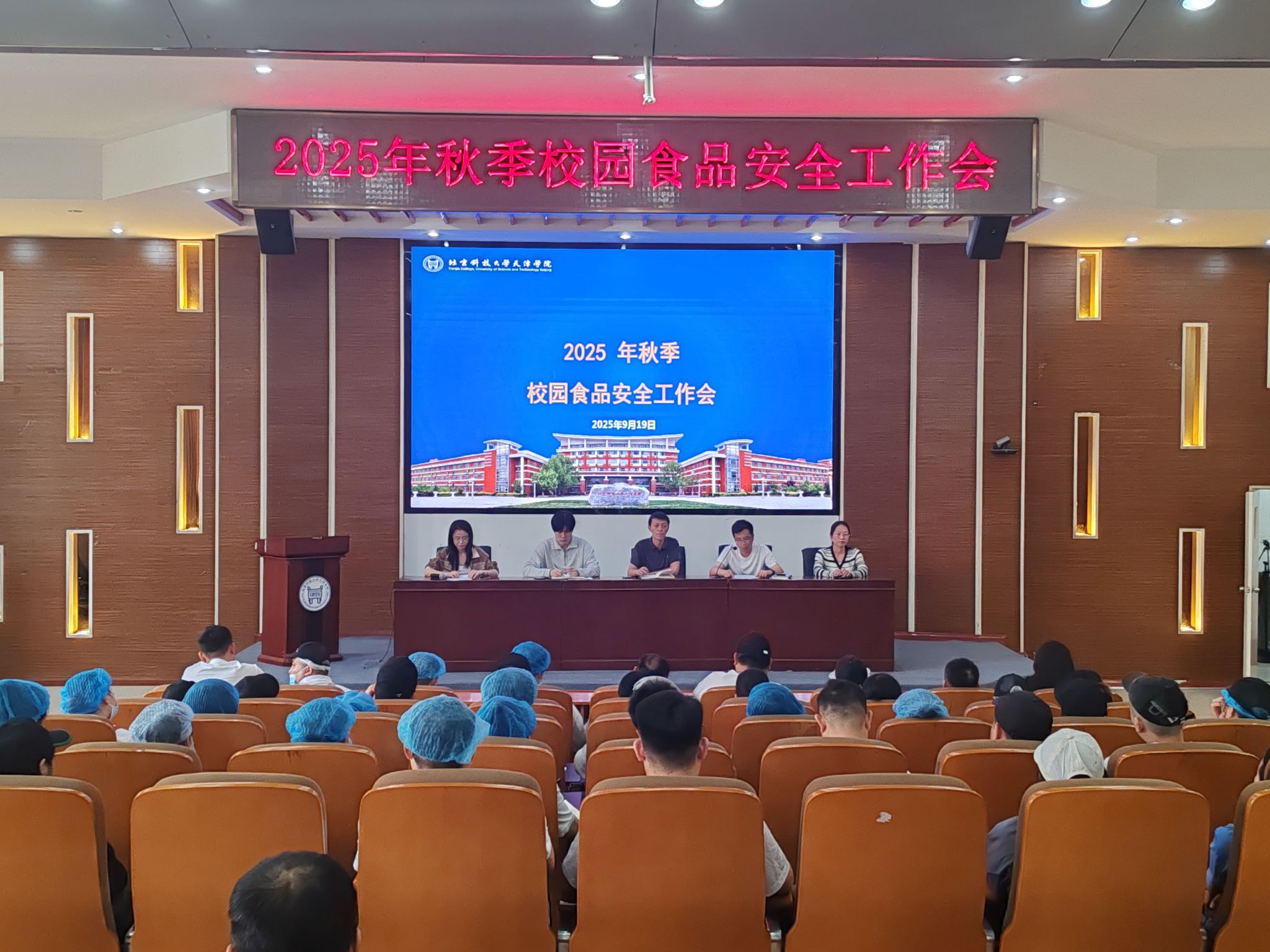 9月19日,學院在理工圖書館報告廳組織召開2025年秋季校園食品安全工作會議。會議旨在深入貫徹落實習近平總書記關于食品安全"四個最嚴"重要指示精神,全面落實市教育兩委、市市場監管委關于校園食品安全工作的部署要求,切實保障2025年秋季學期校園食品安全。學院后勤處負責人、學生食堂餐飲公司經理、校內餐飲單位負責人等共計100余人參加會議。
