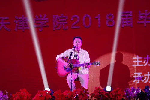 學校藝術團合唱團帶來的小合唱《One More Time》以歡快的旋律,動感的節奏展示出電子音樂獨一無二的魅力。經濟學院帶來的群舞《濃情淡如你》衣袂飄飄,韻味十足,使觀眾感受清淡的歡愉。隨后,由城市建設學院,材料系,經濟學院、管理學院帶來的舞蹈串燒展示出同學們的青春與活力并將晚會推向高潮。緊接著一個詮釋青年人夢想與擔當的微視頻拉開了第二篇章的序幕。機械系和藝術系帶來的原創歌曲《高山》,詞曲如山間清泉輕叩人心,勉勵青年人要不懼困難險阻,永攀人生高峰。法律系的現代舞《煢煢孑立,季憶留夏》,訴說著畢業生們對青春的懷念。經濟學院帶來的歌曲《自始無終》,演繹出了畢業生們對在母校學習生活期間美好回憶的眷戀和對未來生活的展望和期待。管理學院古典舞《灼灼芳華》伴著幽幽旋律將曼妙舞姿綻放眼前。學生藝術團舞蹈團帶來的傣族舞蹈《甘露》柔美輕盈的步伐猶如精靈般靈動,在舞美的烘托下婀娜搖曳的舞影展示了民族文化的獨特魅力,令現場觀眾陶醉不已。晚會最后畢業班輔導員們送上了特別節目《一生有你》,表達出母校、老師對畢業生的深切祝福和美好期許,至此“逐夢芳華”北京科技大學天津學院2018屆畢業生文藝晚會圓滿落下帷幕。