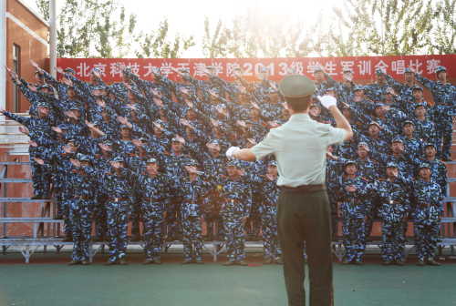 9月11日下午4時, 2013級學生軍訓合唱比賽在西訓練場隆重舉行。合唱比賽以連為單位進行,每連組成70-80人的合唱隊,新同學們以飽滿的精神,雄渾的氣勢、高吭的歌聲為觀眾呈現了一場精彩的視聽盛宴。各連帶來的合唱曲目《穿越硝煙的迷彩》、《水手》、《中國軍魂》、《軍港之夜》、《送你一枚小彈殼》、《當那一天真的來臨》、《精忠報國》等歌曲都抒發了當代大學生對黨、對祖國、對軍隊、對人民的深厚感情和無限熱愛。經過激烈的角逐,七連憑借優異的表現摘得桂冠,三連、二連分獲二三名,一連獲得最佳創意獎,五連獲得最佳人氣獎,四連和六連分獲最佳精神面貌獎。