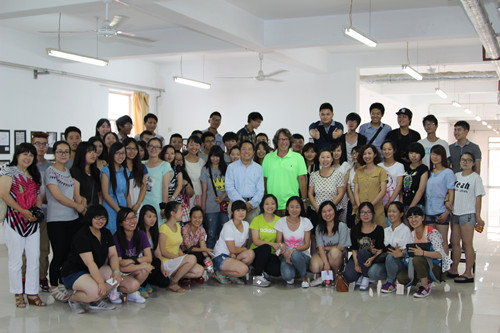 在講座中,大衛(wèi)·帕格爾(David Pagel)教授簡短介紹了波普藝術(shù)對(duì)美國近代藝術(shù)的影響,用了98張具有點(diǎn)代表性質(zhì)藝術(shù)作品為師生詳細(xì)講解了美國近代藝術(shù)的變化。易凱教授則從價(jià)值觀、全球化的現(xiàn)實(shí)要求及個(gè)人的適應(yīng)等方面介紹了美國藝術(shù)教育的特點(diǎn),并且以自身的留學(xué)、生活經(jīng)歷為例,鼓勵(lì)大家走到外面的世界去開闊眼界。講座結(jié)束后,兩位教授與學(xué)生們了做了簡短的互動(dòng)。