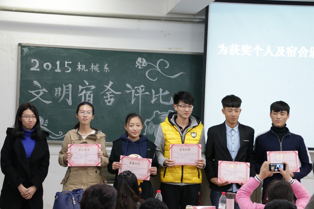 此外,本次活動還評選出2015機械系文明宿舍優秀獎3名、三等獎3名、二等獎2名、一等獎1名。