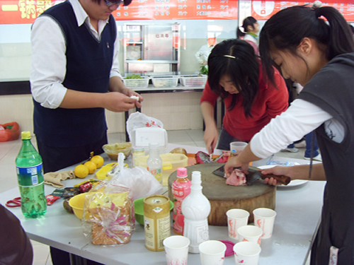 做菜過程中同學們都拿出了自己看家本領,每道菜都搭配巧妙,精工細作。評比根據每道菜的色、香、味、意、形進行綜合打分。最后來自機械工程系物流072班“美味情緣”代表隊的“極地之戀”摘取了桂冠。經濟系金融075班“辣妹廚房”代表隊的“干燒魚”和物流071班“食神夢之隊”的“四氏紅燒肉”榮獲二等獎,物流072班“果果家族”代表隊的“香酥雞胸”、經濟系金融076班“四喜丸子”代表隊的“蛋包飯”獲得三等獎。