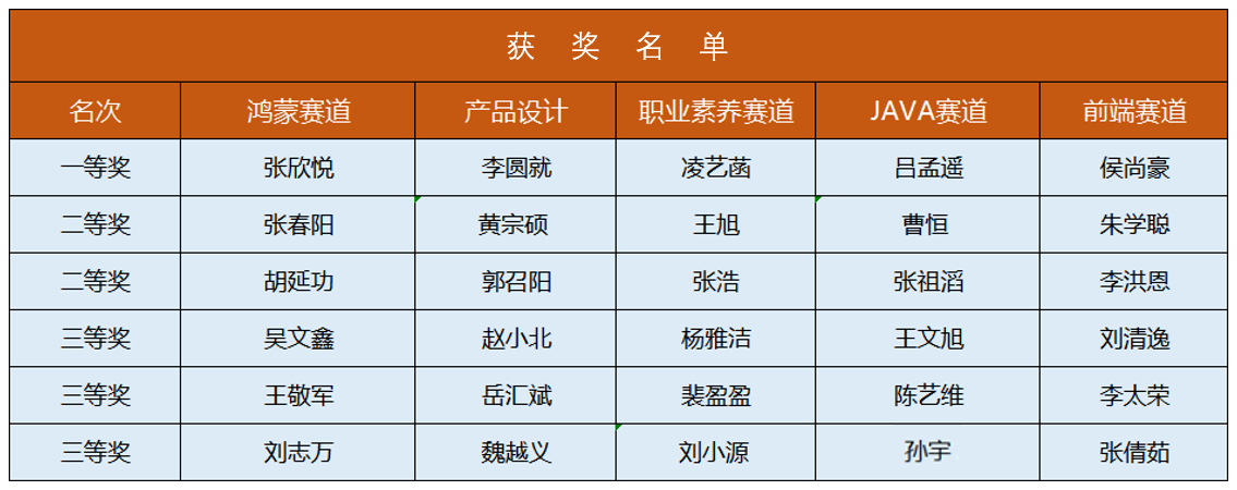 “中軟杯”技能大賽共有鴻蒙賽道、產(chǎn)品設(shè)計(jì)賽道、職業(yè)素養(yǎng)賽道、JAVA賽道、前端賽道等5大賽道,本次共評(píng)出一等獎(jiǎng)5項(xiàng)、二等獎(jiǎng)10項(xiàng)、三等獎(jiǎng)15項(xiàng)。