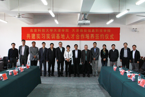 2014年5月7日,北京科技大學(xué)天津?qū)W院與天津微軟信息科技學(xué)院共建實(shí)習(xí)實(shí)訓(xùn)基地人才合作培養(yǎng)簽約儀式在金沙城js93線路檢測(cè)中心理工館209會(huì)議室成功舉行。天津市寶坻區(qū)副區(qū)長(zhǎng)芮永玲,寶坻經(jīng)濟(jì)開發(fā)區(qū)管委會(huì)主任、天津微軟信息科技學(xué)院黨支部書記倪永生,寶坻經(jīng)濟(jì)開發(fā)區(qū)管委會(huì)副主任孫廣松,寶坻區(qū)教育局及人力資源和社會(huì)保障局領(lǐng)導(dǎo),天津微軟信息科技學(xué)院院長(zhǎng)張煜,教育培訓(xùn)事業(yè)部總監(jiān)王棟,企業(yè)合作總監(jiān)曲宏,院校合作總監(jiān)任志龍,寶坻區(qū)知名企業(yè)代表,北京科技大學(xué)天津?qū)W院院長(zhǎng)郭景文,副院長(zhǎng)曾廣晟,財(cái)務(wù)總監(jiān)王俊敏,黨委副書記白亮,信息系主任許學(xué)東,教務(wù)處處長(zhǎng)尹常治出席簽約儀式。簽約儀式由院長(zhǎng)郭景文主持。