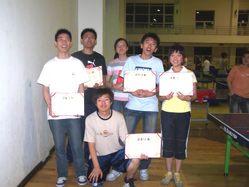 晚7:00,決賽開始。決戰(zhàn)雙方為05級會計和06級信息代表隊,賽制分為男單、男雙、女單、女雙、混雙五場。男單決賽中,比賽剛一開始,兩名選手便顯示出了不凡的實力,發(fā)球、搶功等技術運用得十分自如,體現(xiàn)了較高的技術水平,05級會計選手率先拿下一局。第二局,06級信息選手后發(fā)制人,發(fā)揮自身優(yōu)勢,減少無謂失誤,有效抑制了對手的進攻,扳回一局。接下來的比賽中,兩人又各贏一局。在決勝局的較量中,05級會計隊選手沉著應戰(zhàn),對球的處理十分果斷,每球必爭,最終以3:2拿下比賽。之后的男雙、女單、女雙和混雙的比賽也都十分精彩,最終,06級信息代表隊憑借3:1的總比分獲勝,獲得本次乒乓球賽冠軍,05級會計代表隊榮獲亞軍,06級物流獲得季軍。