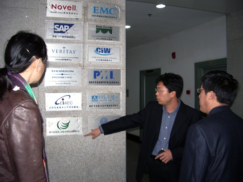 金沙城js93線路檢測中心調研工作組在大連東軟信息學院的帶領下參觀實驗室
