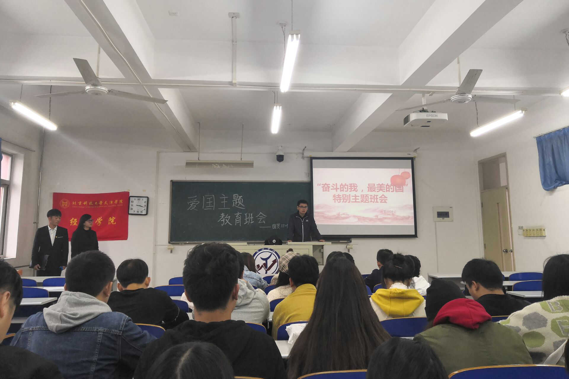 北京科技大學(xué)天津?qū)W院經(jīng)濟(jì)學(xué)院18級國貿(mào)專業(yè)于10月16日-18日,開展“奮斗的我,最美的國”愛國主題教育班會。本次活動由班級自行籌備組織,以慶祝新中國成立70周年為契機(jī),主題聚焦、內(nèi)容豐富,討論熱烈、動情深刻,達(dá)到了預(yù)期效果。