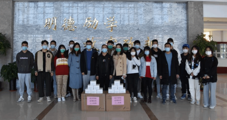 經(jīng)濟學院老師和輔導員為學生發(fā)放口罩