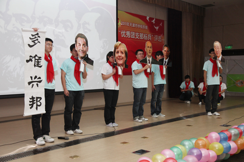 當日,整場展示以紅舞《映山紅》開場、胡總書記七一講話對青年寄予厚望的視頻結尾,采用幻燈片、演講、舞臺劇表演、紙質版材料等形式,在短短八分鐘的時間內展現了該團支部的基本概況、組織建設、制度建設、學風建設、社會實踐、團日活動以及榮譽成果。展示內容豐富、主題突出、形式新穎,突出體現了紅色團支部永遠跟黨走的思想方向,展現了支部的凝聚力、向心力,展示了積極向上、團結進取的精神面貌。最終,金沙城js93線路檢測中心經濟系金融0901團支部以其出色的支部建設成果、扎實的工作風格、幽默的展示方式獲得評委的陣陣掌聲,并最終獲得“2011年天津市學校系統團支部標兵”榮譽稱號。