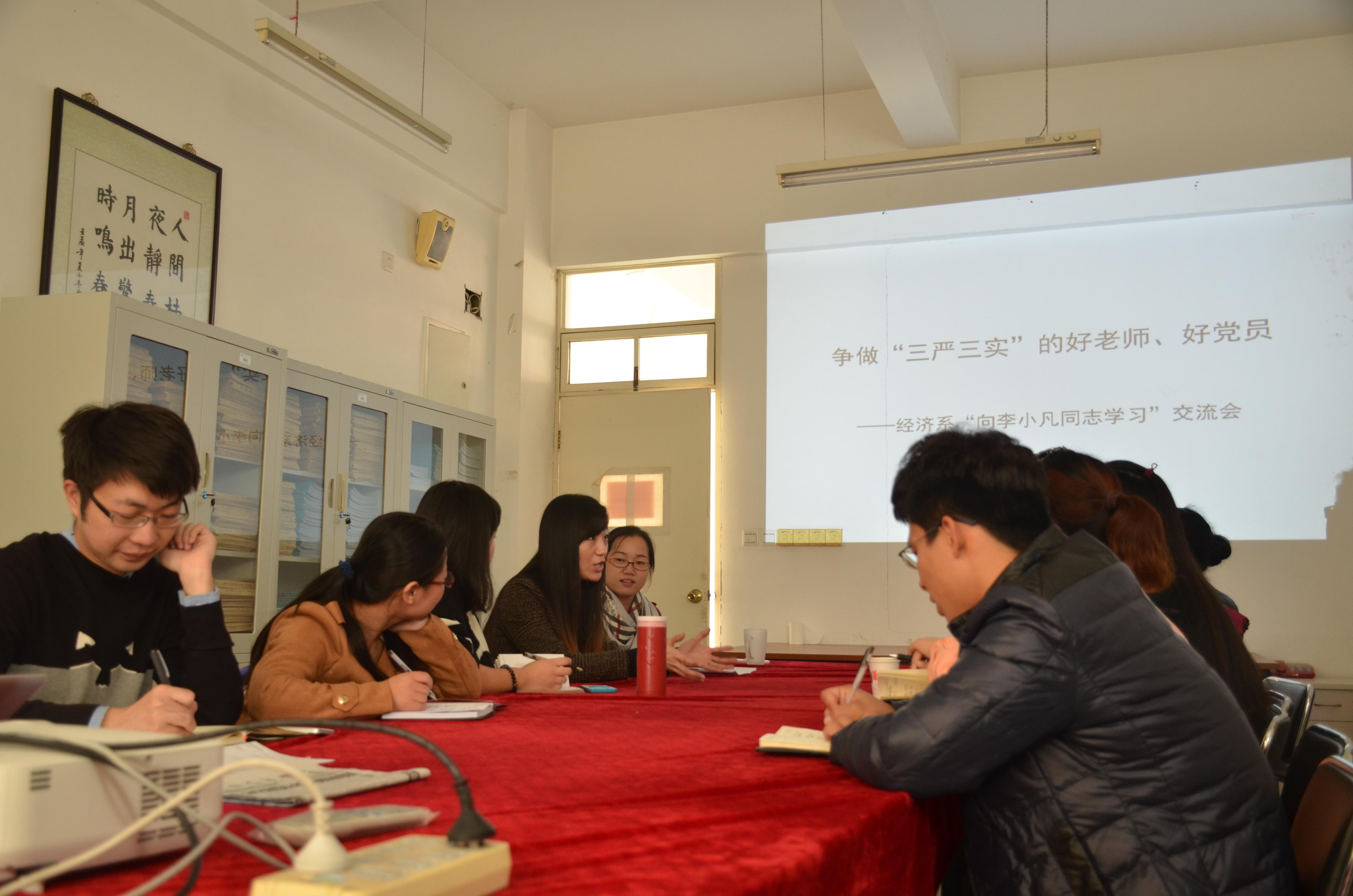 與會(huì)人員積極發(fā)言,現(xiàn)場(chǎng)氣氛熱烈,多名教師從經(jīng)濟(jì)系學(xué)生特點(diǎn)出發(fā),結(jié)合自身實(shí)際工作暢談工作感想。通過(guò)學(xué)習(xí)交流,教師們紛紛表示李小凡老師是一個(gè)平凡的好人,但在平凡中見證著偉大,是我們身邊看得見、摸得著、學(xué)得了的現(xiàn)實(shí)榜樣。與會(huì)教師表示要從加強(qiáng)課業(yè)指導(dǎo),關(guān)心學(xué)生生活等方面切實(shí)落實(shí)李小凡同志“課比天大,慈愛如父”的為師之道,為人之道,在實(shí)際工作中踐行“三嚴(yán)三實(shí)”精神,