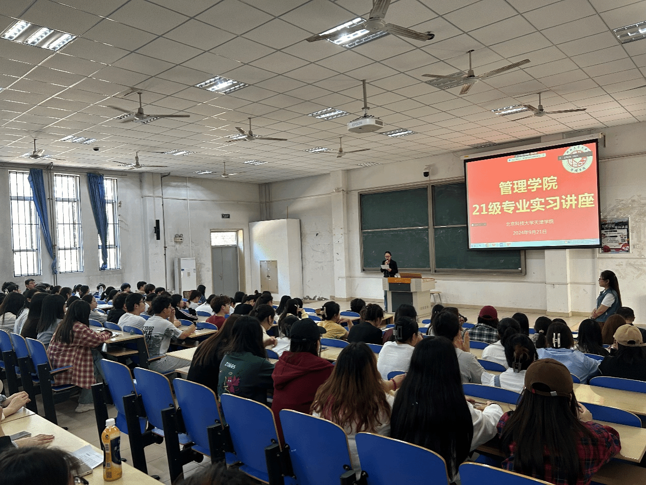 為幫助學(xué)院財(cái)會專業(yè)畢業(yè)生更好地認(rèn)識自己,引導(dǎo)學(xué)生夯實(shí)財(cái)會理論知識基礎(chǔ),了解社會需求及行業(yè)信息,了解財(cái)會部門工作分工及職位晉升路徑,便于學(xué)生用專業(yè)知識更好地服務(wù)社會,幫助學(xué)生樹立正確的財(cái)會規(guī)劃好個(gè)人職業(yè)發(fā)展。2024年9月21日,管理學(xué)院于9教108、109舉辦了21級專業(yè)實(shí)習(xí)講座。本次活動邀請到北京科技大學(xué)副教授裴利芳老師,和中國航空器材集團(tuán)公司外派參股企業(yè)財(cái)務(wù)副負(fù)責(zé)人、學(xué)院2005級優(yōu)秀校友張達(dá)成學(xué)長。管理學(xué)院院長王賓容老師攜21級全體學(xué)生參加了本次活動。