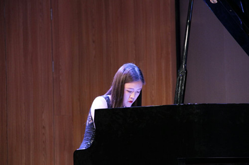 本場音樂會是由藝術(shù)系學(xué)生自發(fā)組織并完成的,充分展示出指導(dǎo)教師對學(xué)生多方面能力的培養(yǎng)成果。整場音樂會包含聲樂獨唱、鋼琴獨奏等多種形式。作品內(nèi)容包括《鴻雁》、《滿江紅》、《皮黃》、《梅花三弄》等14首耳熟能詳?shù)闹袊髌罚缆暢拔餮髽菲髋c中國作品旋律的完美結(jié)合,讓觀眾耳目一新。
