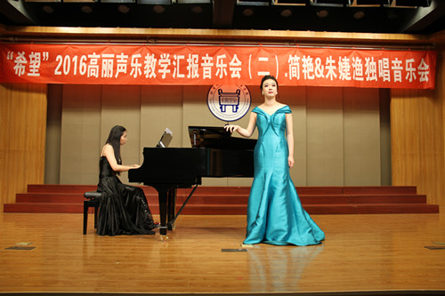 本場音樂會以“希望”為主題,不僅對兩位學生在三年來努力學習的成果做出了匯報,更展示了高麗聲樂教學的成果——高麗的學生在國內外各類比賽中獲獎,并在今年的畢業班中,高麗的兩位2012級學生,分別考取了天津音樂學院和泉州師范學院的碩士研究生。