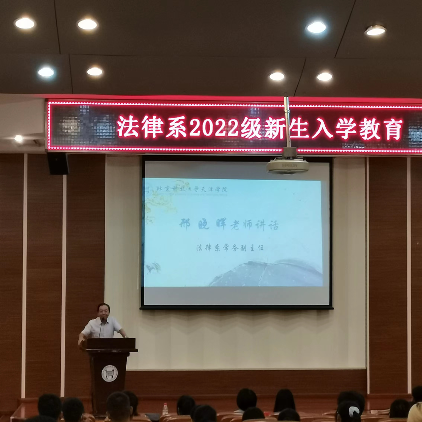 2022年9月21日,法律系在理工圖書館學術報告廳舉辦2022級新生入學教育。法律系系主任朱京安、常務副主任邢曉暉、黨總支書記張莉、2022級輔導員趙振杰、22級法律系全體新生參與本次活動。