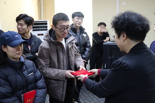 頒授儀式在熱烈的掌聲中拉開帷幕。首先,羅大欽老師宣讀2019年法律系2016級在校生通過法律職業資格考試名單:李明月、王絡琛、宋留洋、張昕、李雨霞、安星琦、劉瑞巧、羅珠、王晨璇、李天嬌、王文靜、程紅、郝云、唐霓銳、王鐘漢、羅詩弘、姚亞亞、付鑫秋、胡智國、張倩、達明磊、包凱宇等共計22人。法律系黨總支書記馮海燕、王蘭萍教授為他們頒發榮譽證書和紀念品。